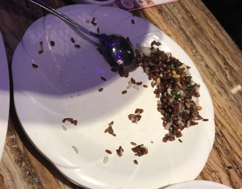 桂花糯米藕的糯米太少只是很甜;红米炒饭有点油,蒸蛋好吃萝卜爽口,人多的时候上菜略慢。