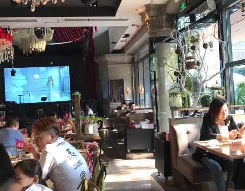蝴蝶梦音乐餐厅,装修风格怀旧,80年代上海餐厅风格。很有情调,是一家音乐餐厅,有歌手驻唱、有中餐、晚上还有酒吧,相当舒适,逼格满满。餐厅里随处可见的各式蝴蝶,斑驳的灯光,抒情的音乐,环绕的植被,头顶有射灯在转,现场氛围很不错 。