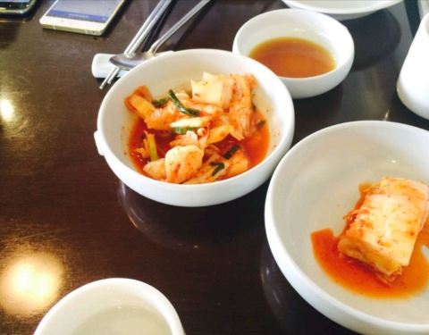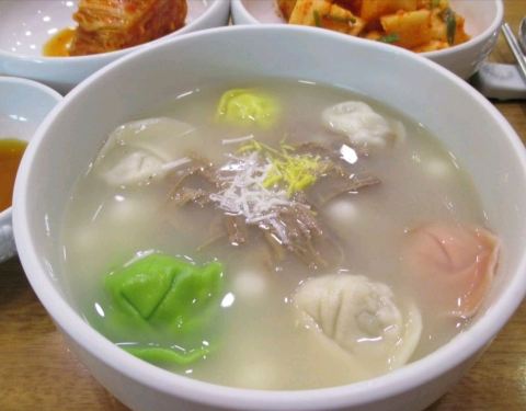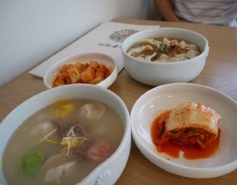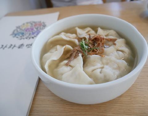 韩国人的饺子,包法和广东的馄饨样子差不多,有云吞,馄饨的各种样子,里面的馅料是猪肉为主,蔬菜也有,不过价格比国内贵了很多。