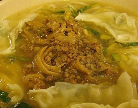 怎么看怎么像馄饨,还是馄饨,个头真的好大,门头做的比较的醒目,汤底是骨头汤底,味道还是很不错,最后我把所有的汤都喝完了。
