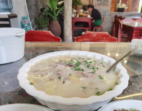 寺前食铺很喜欢的一家店,卫生条件不错,座椅很舒服的。菜价便宜份量足。推荐烤五花肉,特别香。白族特有的烧猪皮很大一盘很香,烤猪皮蘸着辣椒汁也好吃。三花炒蛋有特色,吃着还有些花的香味。酸辣鲫鱼,鱼肉入口即化,里面的酸居然是酸梅调出来的,酸的非常柔和不具有刺激性,辣得也恰到好处。啤酒是喝的当地特色的风花雪月酒,因为妹纸对啤酒无爱,度数有点偏低。黄焖鸡选用的鸡肉质紧致,有咬劲,里面的配菜都很入味。服务员和老板娘很友好,给大家介绍双廊的历史与当下说的很生动的。总体而言很实惠的餐馆。
