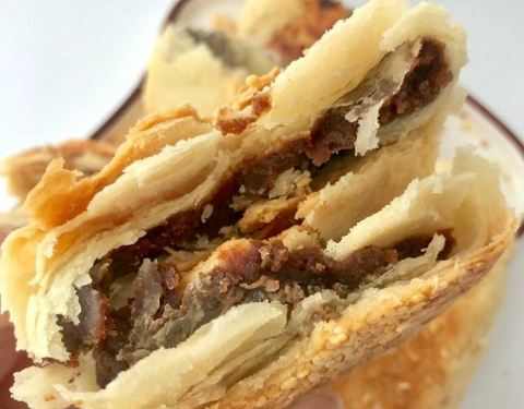 回来才发现阿姨给我装错了少装了肉松酥饼多拿了个甜的。豆沙/芝麻糖/桂花糖。咸味的就只买了葱油。 强烈推荐葱油味,头一次看到葱油烧饼里面那么多葱的。不打开袋子凑近都能闻到一股葱香味太迷人了。热的时候酥的掉渣啊当然冷了也是。又酥又咸又香欲罢不能。难怪大妈们都二三十个这样子买了。 甜味的有点踩雷。实在太甜了。豆沙在里面算甜度最低还能接受的别的两种就..想象一下一口芝麻糖糊嘴里用身体的温度化开。但是刚出炉的时候带点流心可能馅分布均匀一些不会显得那么甜。