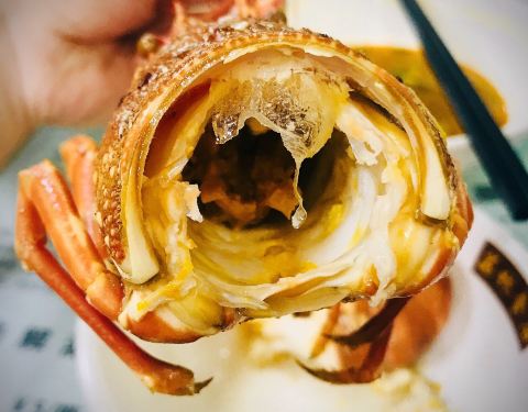 虾膏配着面一起吃,非常美味。龙虾肉紧实饱满有弹性,一口下去很满足