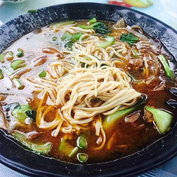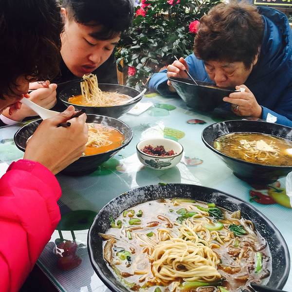 午饭在二楼的露天平台吃的面。榨菜肉丝面好吃极啦