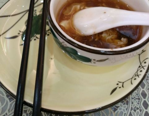 饭店在住的宾馆不远,挨着四眼古井。饭店也有早饭,吃着还不错。几次晚饭和早饭都在他家,口味是我喜欢江浙口味。服务还可以,洗手间、包间都在楼上。两个人点了一菜一汤+东坡肉,刚好的量。 东坡肉不推荐,太腻...