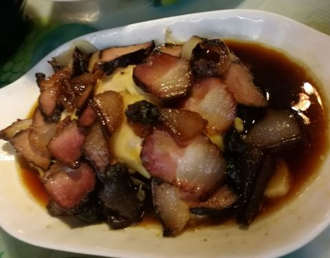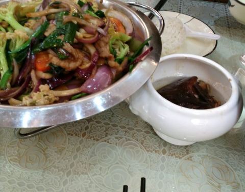 饭店也有早饭,吃着还不错。几次晚饭和早饭都在他家,口味是我喜欢江浙口味。 干锅菜花喜欢里面洋葱