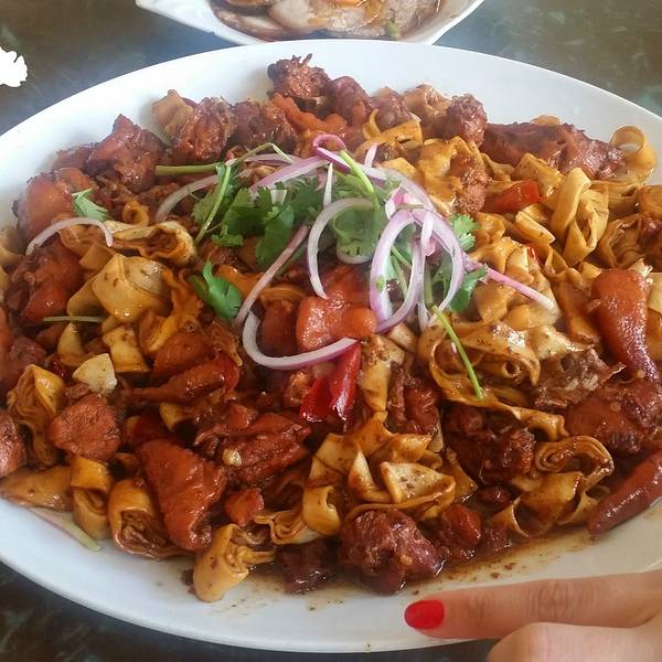 晚饭是吃的当地比较有名的卷子鸡,有点类似大盘鸡,但是味道还好。