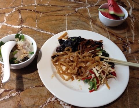 这家自助餐在酒店的二楼,酒店在章丘算得上还不错的吧,不过管理水平还是差了一点,早上去吃自助餐,人太多了,酒店服务员也是管理的不到位,不能对旅客有效的疏导,导致打餐的人聚堆,桌椅都不够用,餐台清理的也不及时,菜品也很一般,都没什么可吃的,不建议去。