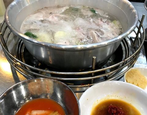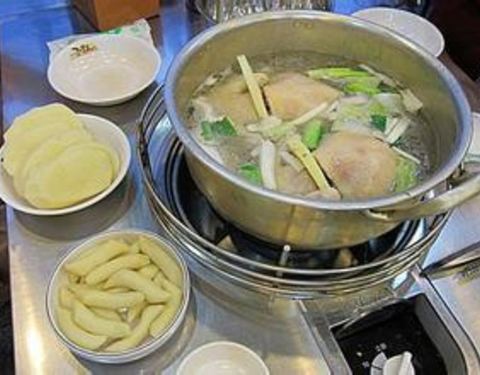 我个人很喜欢在汤里那股蒜味,很美味,鸡肉沾着调料吃很不错,可以点份土豆,蘸料好吃。 走进东大门 狭窄小巷的美食一条街就能看到它。东西走向的狭窄小巷里满是一家挨着一家的餐馆。一直走就能看到。,,,