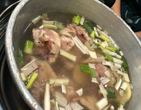 推门坐下还没吭声呢,老板直接端上一个锅,跟流水线似的麻利[允悲]再定睛一看,一只童子鸡下清水锅,作料只有土豆和葱,看起来清寡的要死。我和我妈面面相觑,想着都上来了吃就吃吧,倒了点酱油醋蒜末辣椒就开吃,一入口对看一眼,惊了。肉太嫩了,汤巨鲜!一口气一锅全吃了。从此来了就要跑过来打卡。