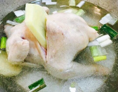 推门坐下还没吭声呢,老板直接端上一个锅,跟流水线似的麻利[允悲]再定睛一看,一只童子鸡下清水锅,作料只有土豆和葱,看起来清寡的要死。我和我妈面面相觑,想着都上来了吃就吃吧,倒了点酱油醋蒜末辣椒就开吃...