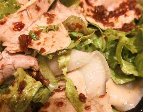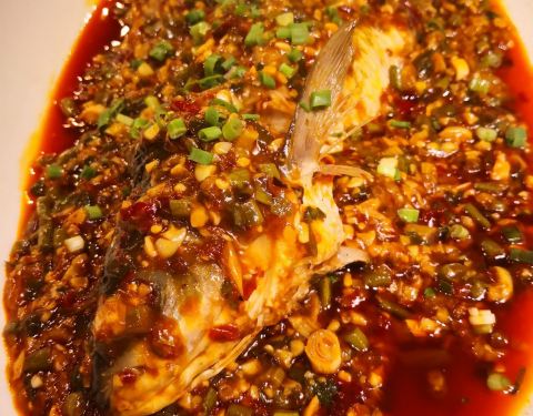 裹上生菜蘸点调料进口的感觉很爽呀 豆瓣鱼,鱼的口感非常鲜嫩,有了豆瓣酱让鱼肉更入味