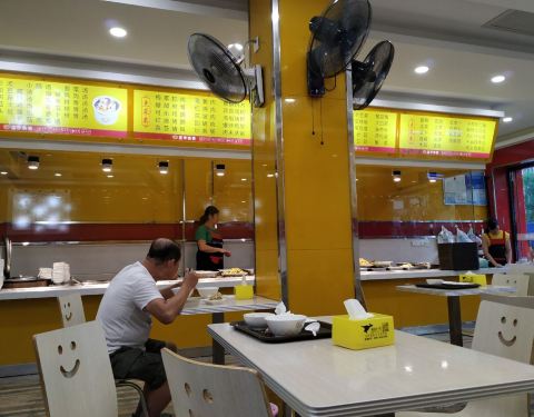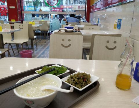 ...站斜对面,市区中心,餐厅装修还好,菜品过得去,米饭稀饭可以吃到饱,经济实惠为主,美味可口谈不上