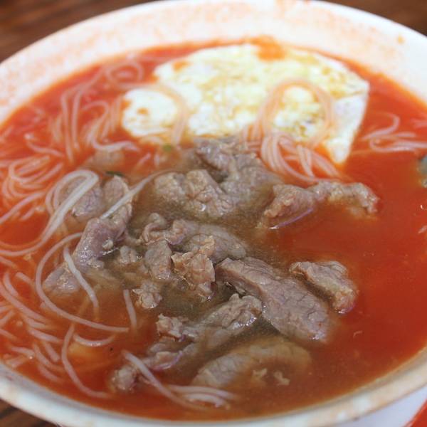 胜香园中环的那家店,一大清早还没开始营业就吃货们在排队了;到了晚上5点之后,胜香园已经收摊了,还陆陆续续有吃货找过来,一看收摊了说怎么收的这么早!胜香园受欢迎是真真的。这次在柴湾看到这家,也许是位置的确比不上中环吧,没有那么多游客,居然没有人排队。既然这么轻松就能吃到胜香园,那也就不要错过机会了。点的依然是最畅销的鲜茄牛,尝得出来是熬了很久的牛肉汤,汤浓鲜香,番茄的天然微酸,很开胃的说