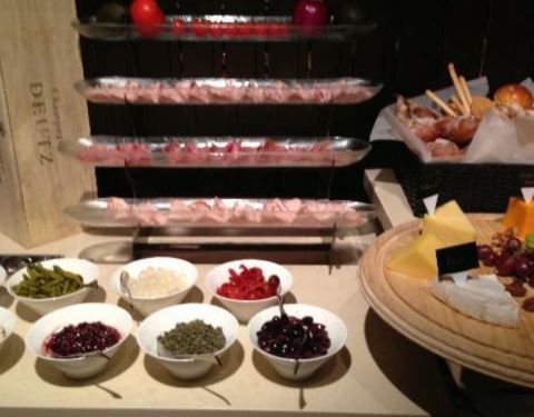 订位时要求坐近玻璃窗,坐在最远处的角落,更加有私人空间,可以舒舒服服悠闲地撑台脚。长条形的餐厅,每个角落都可以望到维港境色,只是跟窗门较远罢了 。菜色太丰富了,口味也是赞,有芝士、火腿、巴马火腿、刺...