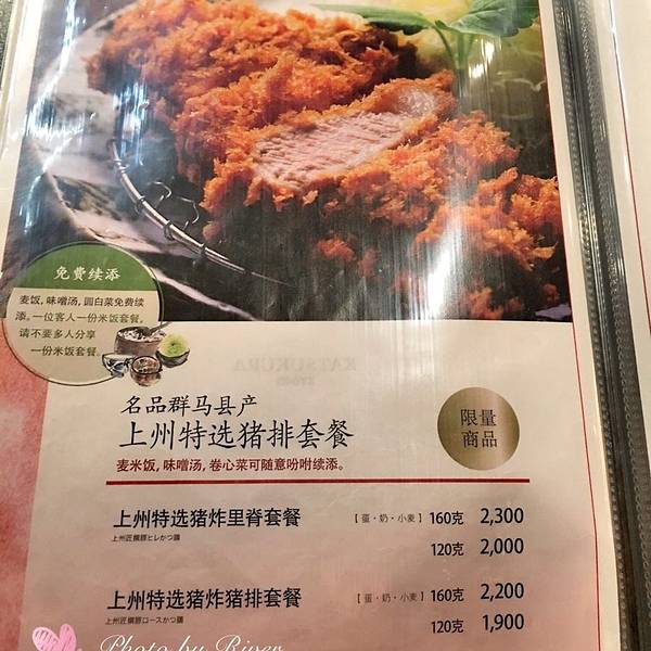 可能是因为地段关系吧,猪排有很多品种,分不同的部位,价格也不同,最喜欢还是炸的黄金松脆的菲力部位啦呀