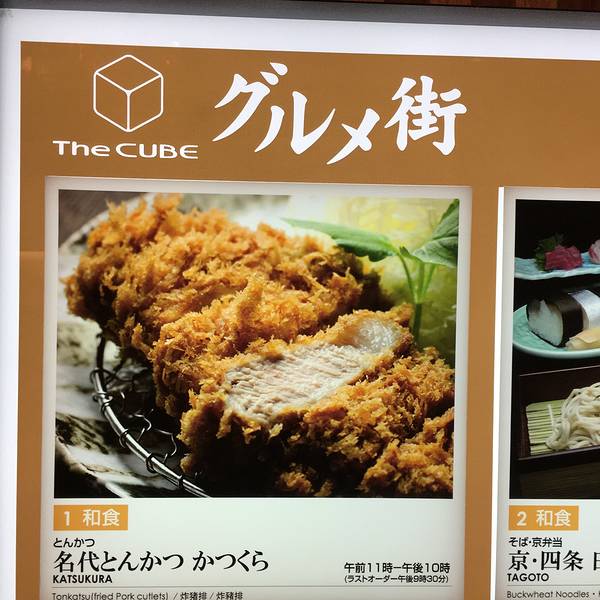 位于京都駅ビルThe Cube11F,坐京都站内的电梯一路向上到11层,进入左手边的商铺,看到排队很多人的就是名代了。排了10来分钟,终于可以进入。桌子上放着各种酱料。有猪排酱汁、浓稠酱汁、柚子沙拉酱。柚子沙拉酱...位于京都駅ビルThe Cube11F,坐京都站内的电梯一路向上到11层,进入左手边的商铺,看到排队很多人的就是名代了。排了10来分钟,终于可以进入。桌子上放着各种酱料。有猪排酱汁、浓稠酱汁、柚子沙拉酱。柚子沙拉酱是配莲花白吃的,另两种是拌上芝麻吃猪排的。等了10来分钟,猪排大虾套餐来了,大概2000yen。炸物外焦里嫩、满口留香,莲花白和土豆泥口感清爽,令人回味。在北京总吃勝博殿,他家的炸物也很好吃,但是莲花白是配芝麻酱,所以这是第一次吃柚子醋的莲花白,很是喜欢。店铺里的壁画,画的是能够带来好运的葫芦,旁边门帘内部是厨房。吃完饭从京都站下楼的时候,还看见了京都塔。算是一个意外的惊喜吧。