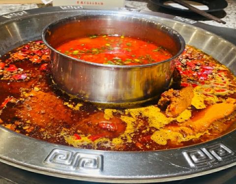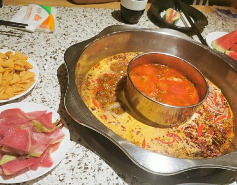 大队长主题火锅是以知青下乡的时代背景为主题装修设计的,具有时代特色,一进门就有穿着绿布衫的服务员大声高喊“欢迎下乡改善伙食”。有4个包厢,雅座和散台,火锅店面积非常大。锅底有单锅,鸳鸯锅还有三种鸳鸯锅。根据自己口味点锅,点餐可以点小份,凤爪,脆皮肠,羊肉,年糕,豆皮,山药,菇类拼盘等菜品种类很多。麻辣香浓味道很赞。自助料碗,还有西瓜、圣女果等水果。大队长是一次性锅底,涮完可以带走,如不带走会当着顾客的面往锅底里加洗衣粉。一次性锅底,绝不二次利用,干净卫生,让食客吃的更安心。