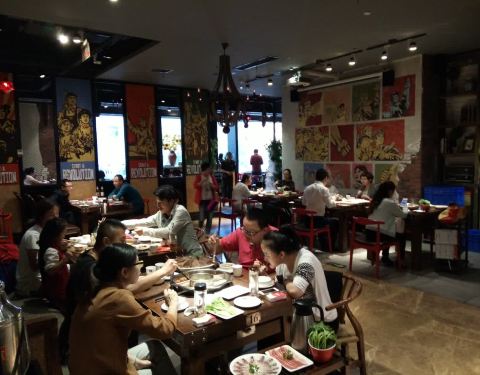 大队长主题火锅是以知青下乡的时代背景为主题装修设计的,具有时代特色,一进门就有穿着绿布衫的服务员大声…