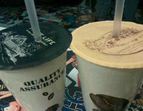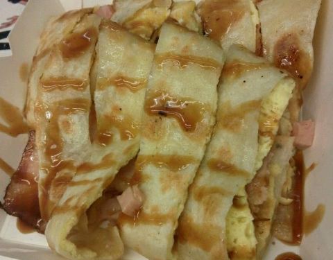 - 蛋饼,选了玉米的,培根,香肠,好好吃啊!招牌奶茶,茶味很浓,柠檬茶,加了一点点糖,蛮好喝的,不腻