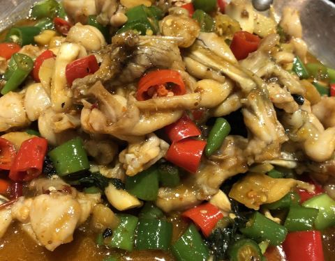 可以支付宝、刷卡及现金买单。点了牛蛙,点了苦瓜,点了干锅花菜,都很好吃。 周围环境是不错的
