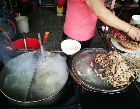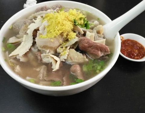 - ...当地居民客人络绎不绝,我们也过来享受早餐,它的牛杂汤料好实在,牛筋丸Q弹有嚼劲,不愧是潮州特色