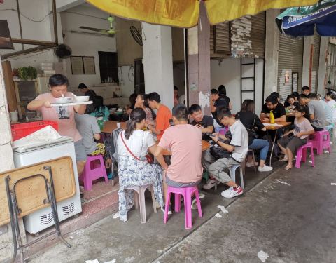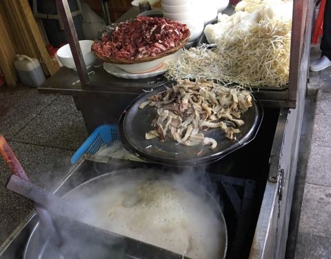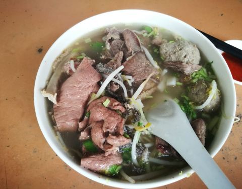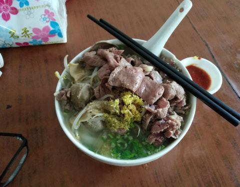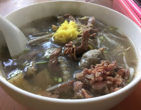 ...当地居民客人络绎不绝,我们也过来享受早餐,它的牛杂汤料好实在,牛筋丸Q弹有嚼劲,不愧是潮州特色