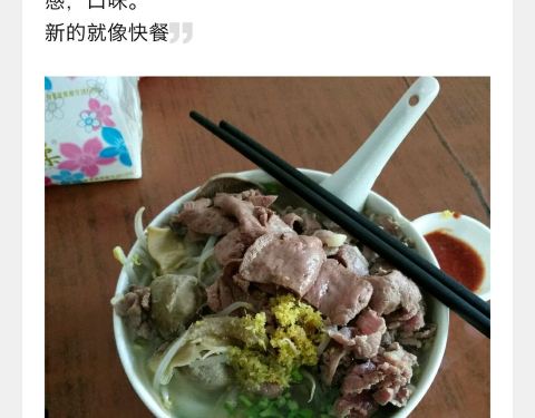 酒店附近热门的小吃(题外话这次订的如家真的出行外食都很方便)大概步行50米吧 店内环境一般般啦,几张桌椅还有只猫咪,地上有点乱糟糟的,点了小份牛杂粿条,量很足料很足,汤底很鲜 牛肉丸很Q弹,粿条上面铺了...