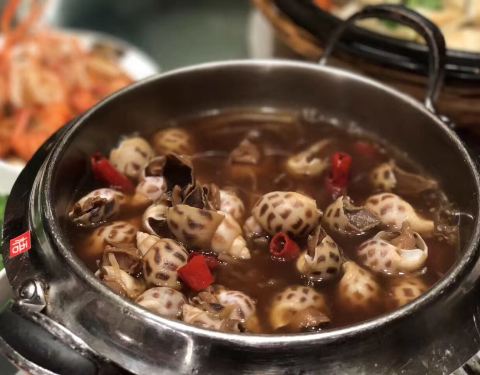 #老王探店#晚餐朋友们相聚映月梧桐,招牌台式辣虾每次必点。浓汤鱼翅,味道鲜美。三文鱼配澳鲍特别新鲜。生啫鳕鱼,肉质嫩滑。辣酒花螺,鳝丝味道都不错。金线莲煲猪肚大补。