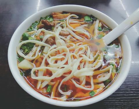 - 肉来馍非常好吃,每次必点。扁扁面也是独一无二的,一碗只有3条宽面,绝对手工面。带皮驴肉也很好吃