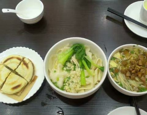 陕西口味,肉夹馍非常好吃,我一次吃了两个,老醋茼蒿拌的不错,带皮卤肉也好吃,扁扁面好有特色,有筋道,加调料拌的味道不错,价钱不贵,值得推荐。