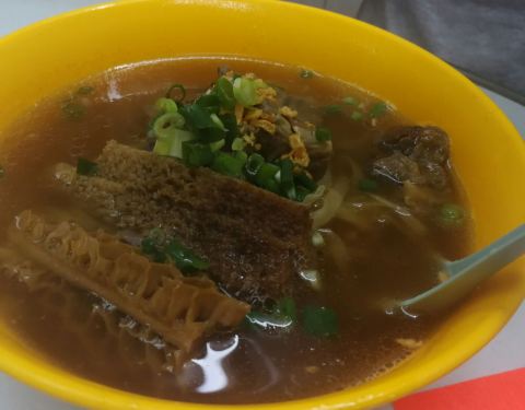 从装潢就可以看到这家店的年资了,他不是仿旧是真旧,老式面摊格局,不要期望装潢,服务反正就是直接,高效,菜品很好,坑腩是本地牛,牛味浓郁,半肥瘦,口感好,炸鱼皮遇到刚好换新的,很脆。