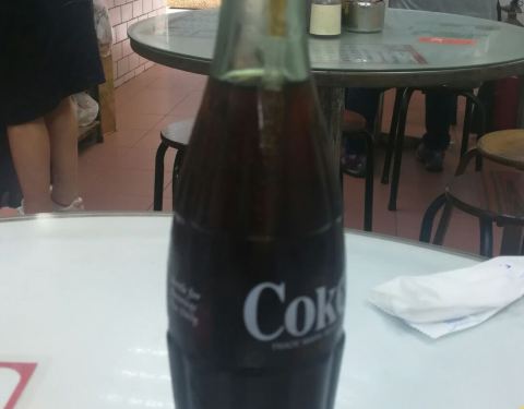 老牌牛腩面店,装潢不成环境也不怎么样,老式大排档格局,但是牛腩好吃,崩沙牛腩肥瘦适中,口感很好,牛味比较浓郁,芥兰脆,瓶装可乐很少见了,怀旧一下。