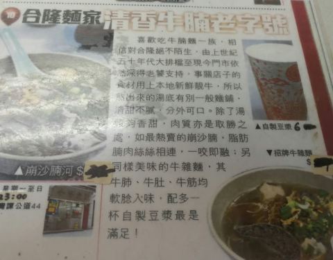 老牌面店,从大排档走到开店,不容易,装潢不要要求,老式的很,牛腩有水平,爽口,肥瘦正好,面条不过不失,忌廉汽水小时候回忆。留意咖啡奶茶都没有,只有瓶装饮料。