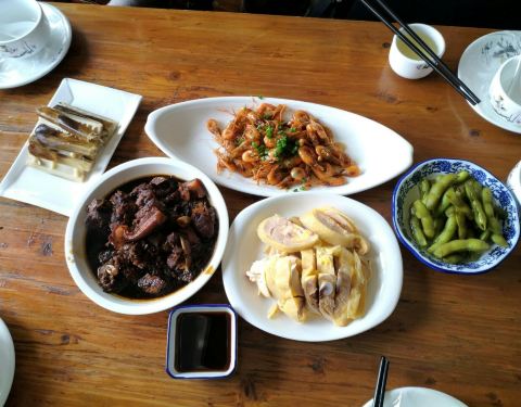 酒家就在粽子博物馆的对面 首先 量很足 其次味道不错 价钱也不贵 我们坐在窗前看着外面的景色 品尝着美味的菜肴 这才是悠闲的度假生活