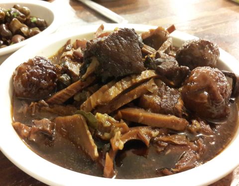 ...去这里吃便餐,四人点了四个菜一晚米饭,萝卜炖骨头汤汤清味纯,笋干烧肉依旧很入味,基本是当地特色