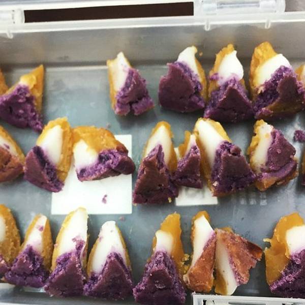 - ...新的口感,上层吃到黄金番薯的松软、中间混著麻糬的Q软、最下层满口紫心蕃薯的绵香,绝对是人间美味