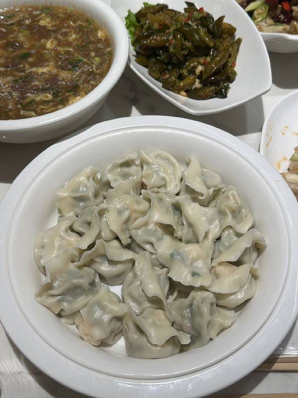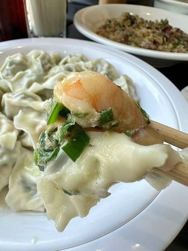 三鲜水饺 :当天现擀现包,饺子皮韧劲十足,每一颗饺子里的大虾肉,吃完直呼爽!