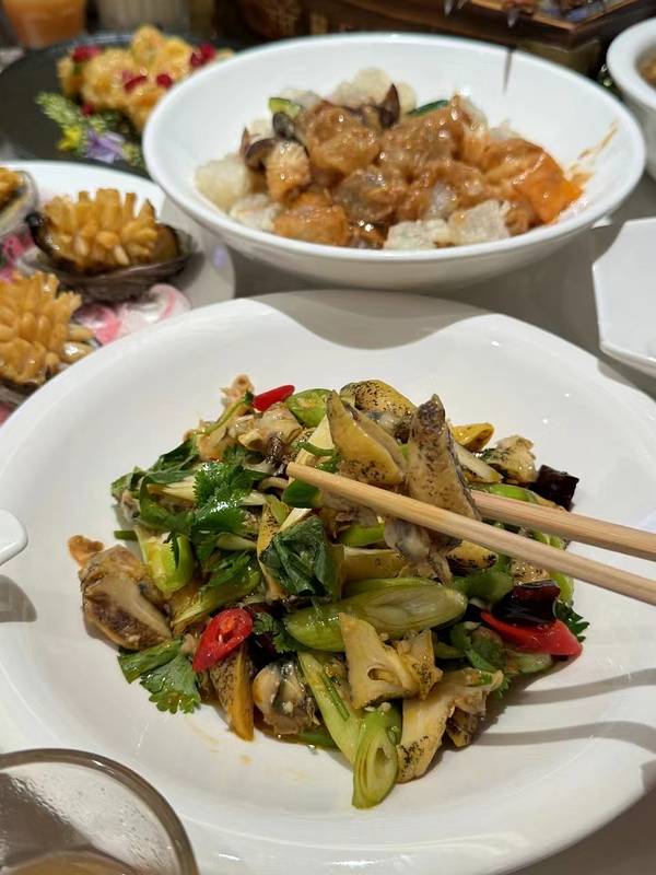 🌟这里有炝拌鲍鱼螺,口感鲜美,爽脆可口;南极海松茸,营养丰富,味道鲜美;还有升官发财汤,名字就很吉利,味道更是一绝!🤩