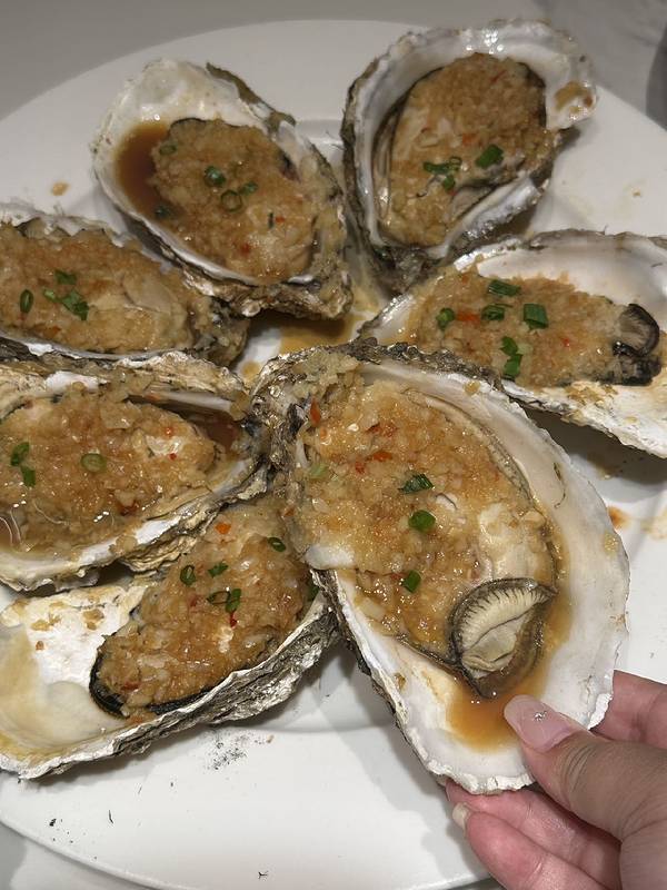 他们家应该算是大连当地的网红餐厅了吧,尤其是过来旅游的朋友,应该没有不知道他们家的。这次来特意过来品尝一下,有个朋友听别人介绍,说他家很地道。赶着不是饭点的时间,就是为了避开人群,烦去等位的时间。到哪儿大概1点,周末基本上餐厅已经没有什么人了。 空间很大,能容纳至少300人的地方。餐厅位置很好,基本上属于市中心了。我们打车过去,说正红旗司机师傅就知道。 我们7个人,花费了650元,价格还算可以。 海鲜种类比较多,属于档口零点式,看你想要吃的海鲜,服务员会告诉你几种做法,你再选择喜欢的。他家还有烧烤,种类也挺多的。不知道是不是因为下午服务员要休息,点菜找了好几个人,都说不负责,还做不做生意了。 生蚝 19一只:蒜蓉口味,个头更大的是29一个。味道做的还不错,就是蒜味有点重,吃不出来生蚝的新鲜味道了。 扇贝19一只:要的是蛋黄焗扇贝,感觉新鲜程度一般,扇贝肉和壳都没有连在一起,不知道是什么原因。 大虾 25一只:大虾还是很惊喜的,直接上火烤的,撒上盐粒。能吃出虾本身的味道和口感,而且虾肉和虾皮很自然的分离开来,能看出虾肉的新鲜程度。 三文鱼炒饭:黑胡椒味道浓郁,三文鱼肉基本上看不到,就是随便吃的一道主食吧。 羊肉串:基本上中规中矩,肉的口感还不错,但是少了一份香,就是吃也行不吃也行,没有很惊艳。 还点了两个素菜,要不吃肉吃多了上火。素菜味道还不错,而且解油腻。 整体还不错,就是服务超级差,是因为有名气不怕得罪客人了吗!而且人均价格大概100元,确实有点贵了,而且海鲜的新鲜程度还需要提高。 最后貌似还开不了发票,所以建议商家还是好好改进一下吧,要不最后吃亏的还是自己。