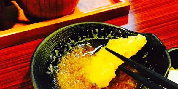 2018广州必吃榜推荐餐厅 人均20+吃了顿天妇罗料理 美滋滋 点评有团购 当场买了使用 感受下这里的物价 店面基本还原日本情境 食客高脚蹬坐着围一圈 中间是烹饪区 下午近两点 还处于排队中 生意极好的 一人食 ...2018广州必吃榜推荐餐厅 人均20+吃了顿天妇罗料理 美滋滋 点评有团购 当场买了使用 感受下这里的物价 店面基本还原日本情境 食客高脚蹬坐着围一圈 中间是烹饪区 下午近两点 还处于排队中 生意极好的 一人食 直入了 有专门的团购菜单 勾选下就好 桌前方有不锈钢盆(放天妇罗用的)配备茶水、萝卜泥、酱菜(黄瓜片&黄豆芽) 及时下单 一起油炸 出品的时候 由师傅依依对号入座夹到你盆里 「紫苏叶卷鸡胸肉+蟹柳+三文鱼」¥19 炸至金黄松脆 不油腻 蟹柳有两根 其余一根 最爱鸡胸肉这款 有紫苏叶的双重口感 「红薯+莲藕+菜花」¥9 各一 红薯不糯 是那种硬质的口感 莲藕爽口不腻 菜花印象不深刻 这家的定食也不贵 人均40-50就能吃饱吃好呢