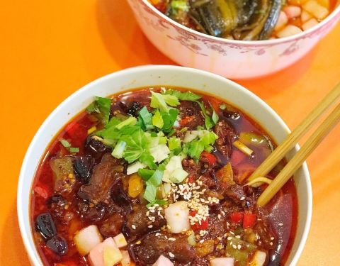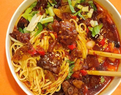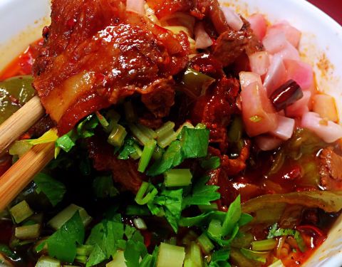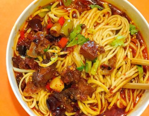 总评: 很多人给我说,他们家只是贵,味道不怎样,生意还好。 哈哈!好奇心嘛。所以我还是去了。 咦~~!怎么我觉得还不错呢。鳝鱼面我只尝了两口,觉得清淡了。 多椒兔子面。哇!好辣好爽好过瘾哦!吃完整个人都热腾了。爽! 价格贵,这点,我觉得还好吧。毕竟那么大碗,况且绍子还是足。 难得一碗面吃得我这么畅快!我表示满意! 评分:82分 性价比:❤❤❤ 每一个人的口味都是有差异的,所以啊,即便是那么多人说他们店味道不怎样,但是价格贵,不会再去第二趟。 但是人家店里生意还是不错啊,饭点的时候,桌无缺席。 那么,个人口味,个人评价,仅供参考哦! 【多椒兔子面】28元 一上桌,那种复合型的辛辣香味扑面而来,各种辣椒混合融入这一碗兔子面之中。 兔肉煸得干香入味,麻麻辣辣,是还没什么骨头的尽肉哦。 面汤基本上是红油,所以啊油比较汪实,辣刺激了味蕾,反而 不会觉得油腻。 第一次吃面吃得我额头微微冒汗的,这寒冬腊月吃得我全身都暖了。 现在想来都不禁吞了下口水。 【鳝鱼面】42元 相对于兔子面的调味这个太温和了,微微一点点的丝丝泡椒酸辣而已。 店里的面条用得不太好,虽然是小亚喜欢的粗面,但是口感不是带着嚼劲,而是导哥说的脆硬。只能说不软耙而已。 鳝段还是不算少,我觉得够吃了,或许相对来说价格是偏高了一点点。 调味比较妙的地方是加了很多的泡萝卜,一点点的酸爽很开胃,可惜还是不足以让我吃完这么一大碗的面条。 建议啊,整个小碗嘛。任何东西多了都是负担,要少少的留一些念想,才是最美好的。 有说店老板很傲骄,态度不是很好,但是我这次是一位男服务员接待的,我觉得没什么问题哈,正常范畴内。