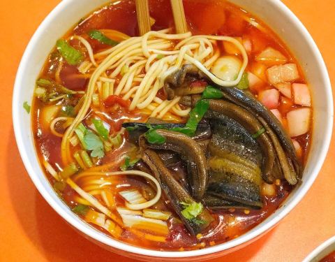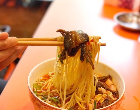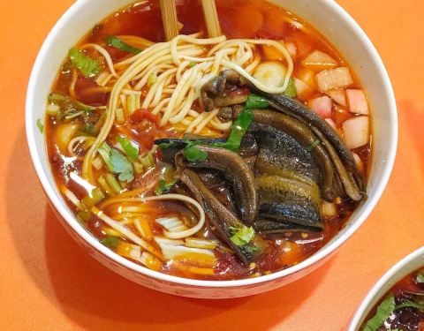 这家面也是只此一家 别无分店 本地人的爱 游客鲜少 原来开在店后面的小区里 饭点儿排大队 现在搬来店面里 生意依然兴隆 如果你问老板他家什么面好吃 他会用成都话慢悠悠的告诉你:什么面都好吃 如果被他看到你剩好多 汤也没喝 他会打你[捂脸]鳝鱼面、回锅肉面、海味面、酥炸糖醋鲫鱼是熊哥赖哥他们每来必点的[机智]