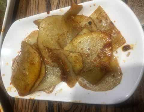 就在正宁路夜市里面,生意太好了,我们去的那天是周日晚上12点!!居然基本是满座。收拾好了一张桌子我们才算有地方。 桌面上有二维码,可以扫码点菜,也可以叫服务员。 三个人,为了多尝几种,全是一份一份点的。 烤的有一把肥瘦羊肉串,20串,半把肚子,鸡软骨,烤土豆,烤扁豆,烤青椒,进门前看门口凉面不错,来了一份,还有一碗特色的牛奶鸡蛋醪糟。 烤的几样都很好吃,应该是刷了酱再加孜然辣椒的,肥瘦的羊肉串瘦肉不柴肥肉不腻。 扁豆很脆,入味儿。 凉面有点儿麻酱味儿在里面,微辣,很好吃。 最最最好吃,让我流连忘返的就是牛奶鸡蛋醪糟,甜度刚刚好,牛奶味儿很浓,稠稠的,不太喝的出醪糟味儿,超级喜欢! 三个人消费160元。