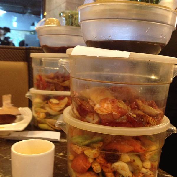 在成都第一次有焖锅这种形式的时候,我跟朋友就是去吃的这家臻口福。先随意选择要的肉、菜,一般3个人,点3种肉类4种菜类,就差不多,但也就是吃个刚刚好,也可以直接点套餐。比干锅的价格贵。每种菜都是用透明盒...
