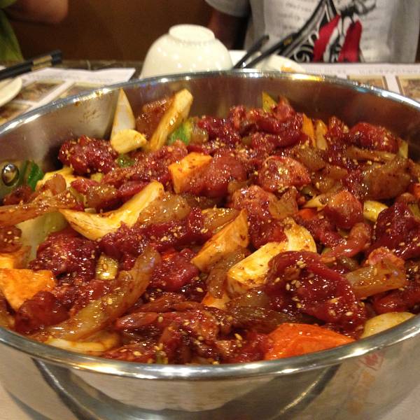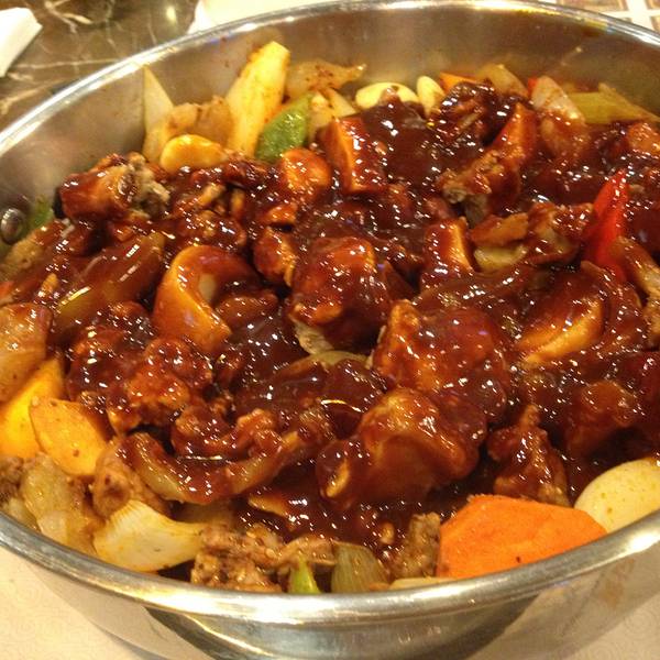 ...辣的程度,但就我感觉,比起火锅的麻辣,干锅的干辣,这家焖锅的汤汁适中,口味并不算重,还带着点甜
