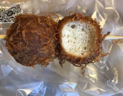 每次经过小南街那家爱达乐都觉得怎么生意会这么好呢?那么多面包总是能买得空空的,同样的位置为什么当初浮力森林就开垮了,而爱达乐就火了呢? 好吧,我不懂也不能理解。 今天顺便经过这儿,想说去看看嘛,买两款尝尝看。 【麻辣酱香包】7元 我的天啦,这是什么黑暗料理,你确定不是做的一个酱肉包子?只是压扁了而已? 新鲜出炉还是热乎的时候吃应该还好,但是我吃的时候是冷的呀,那表面看起来像是面包,其实里面包的是带有很多肥肉的酱肉馅儿,就是我们往常吃的酱肉包子那个酱肉馅儿,一点儿不变,还有带葱花的酱肉馅儿哦。 真的是越吃越觉得恶,因为那是很强烈的吃冷包子既视感哦!太可怕了! 【藤椒串串】8元 有点儿像荤版的糖油果子,只是这个果子是实心的,外面裹了一圈辣味肉松。 果子口感不错,软韧还有些弹性,咬一口就忍不住咬第二口。 而外面的肉松丝丝也还是多香的,总体调味就靠它了。只是藤椒味我是真的没吃出来。 比我想象中要好吃,并且不油腻哦。难得! 恩。他们家也就是便宜吧,其他我真的没感觉了。