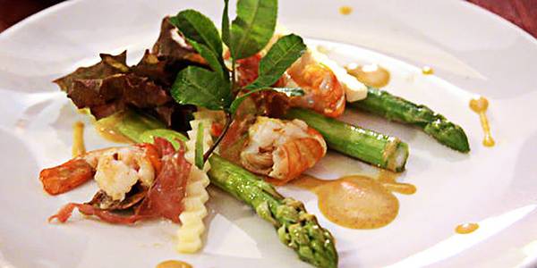 干煎虾与芦笋佐蒜味黄咖哩