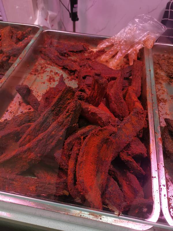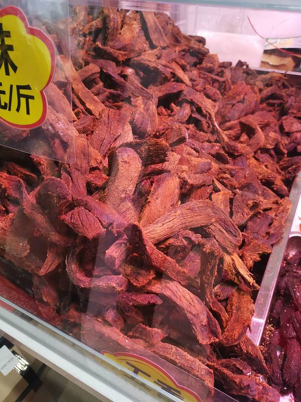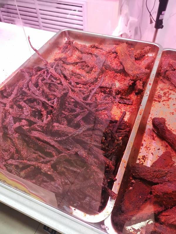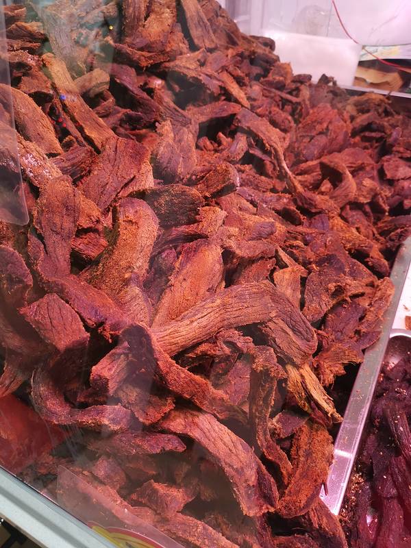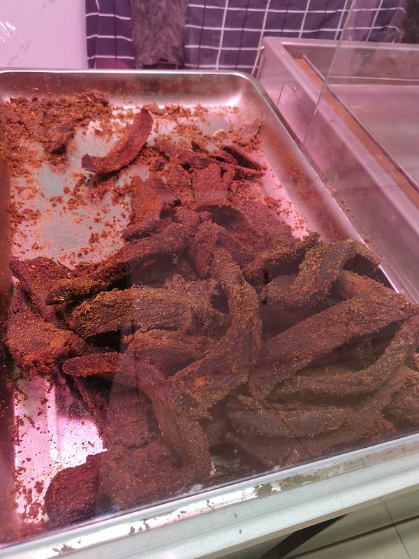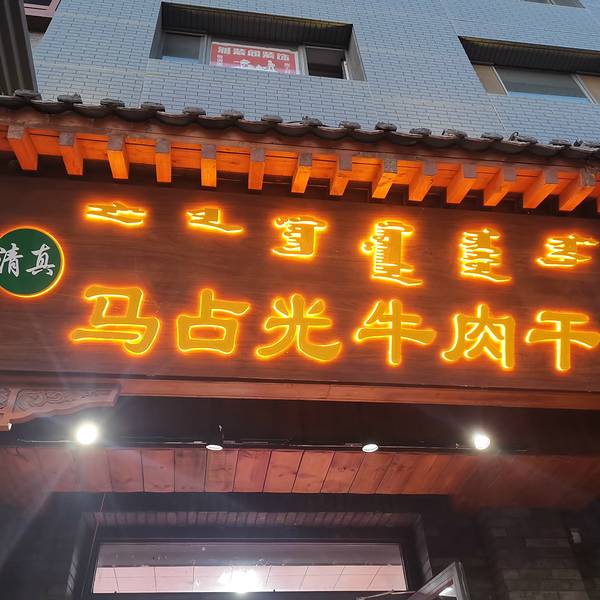 正好这边有一个比较有名专门做牛肉干的马占光的老店,店里主打各种味道的风干牛肉干,试吃了一点后,...