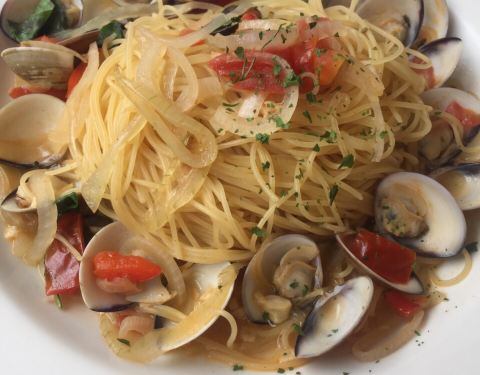 士林捷運站的歐品香廚 是我們義粉的首選 加麵加飯不加價 照顧大食量的客人 加上口味道地 生意挺好的 我們點了白酒蛤蜊細麵 墨西哥雞肉麵 和蔬菜素麵 加價套餐 有玉米濃湯 香蒜麵包 和飲料 吃的非常滿意~